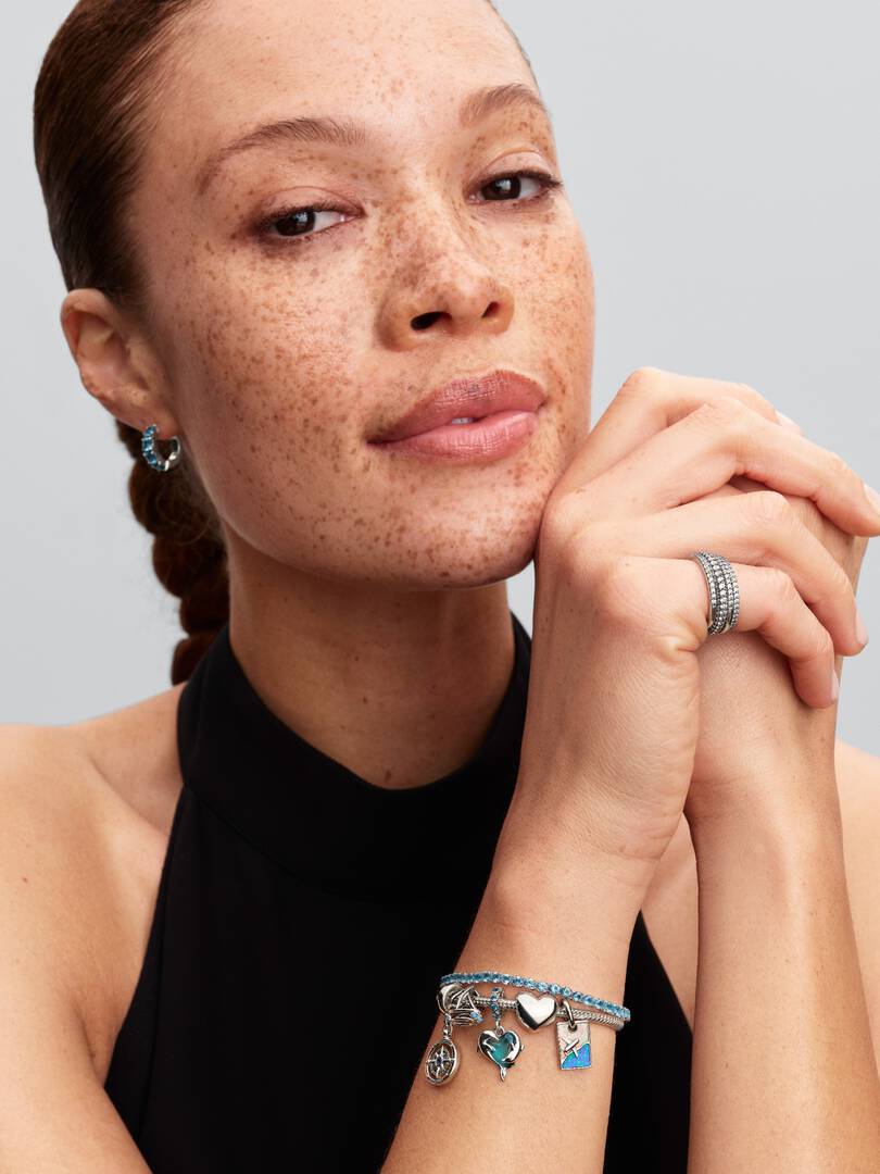 Explore the world with a symbol of freedom and adventure. This travel-themed charm is designed to inspire your journey, with a unique blend of white and blue lab-created opal.