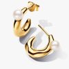 Step into your element with the Treated Freshwater Cultured Pearl & Organically Shaped Hoop Earrings. Each earring features one treated freshwater cultured pearl attached to an organic-looking 14k gold-plated hoop with c