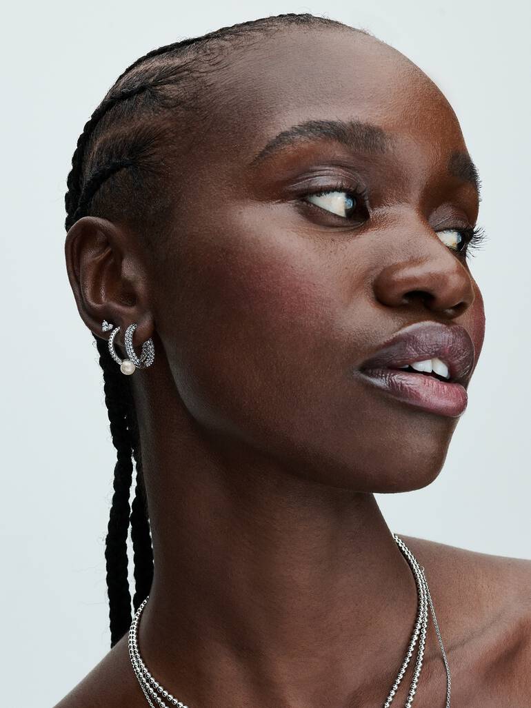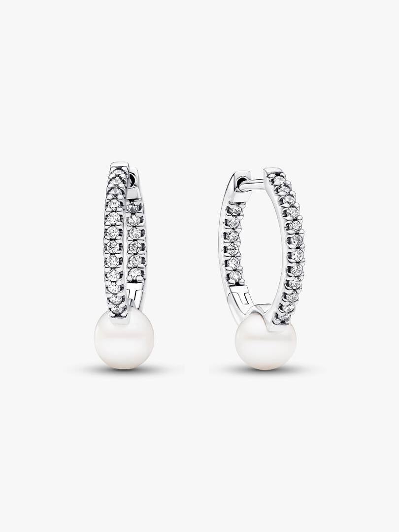 Treated Freshwater Cultured Pearl & Pavé Hoop Earrings | Sterling silver