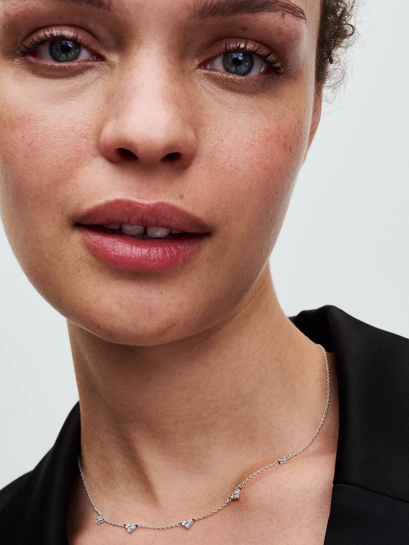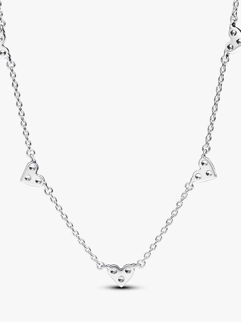 Triple Stone Heart Station Chain Necklace | Sterling silver