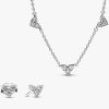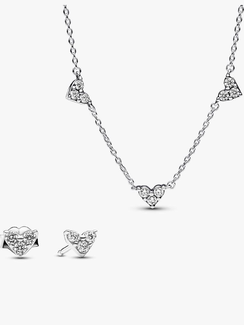 Triple Stone Heart Station Necklace and Earring Set | Sterling silver
