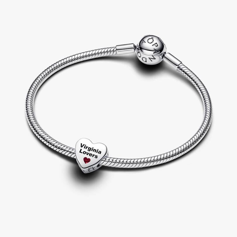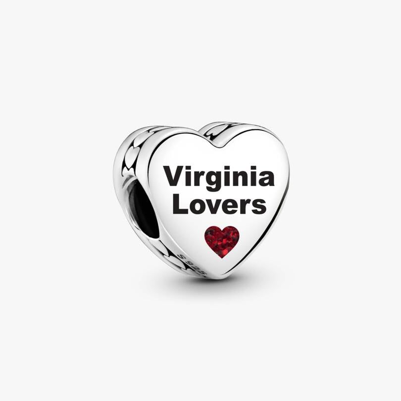 r side features “Virginia Lovers” in black lettering with a lovely red heart underneath. Wear your love on a stylish charm, pictured with the place you call home.