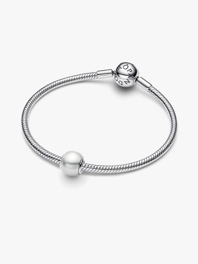 Elevate every look with our White Charm. This round white artificial pearl charm has a sterling silver core, allowing it to slide seamlessly onto your favorite carrier. Inspired by the pearl as a symbol of wisdom, sereni