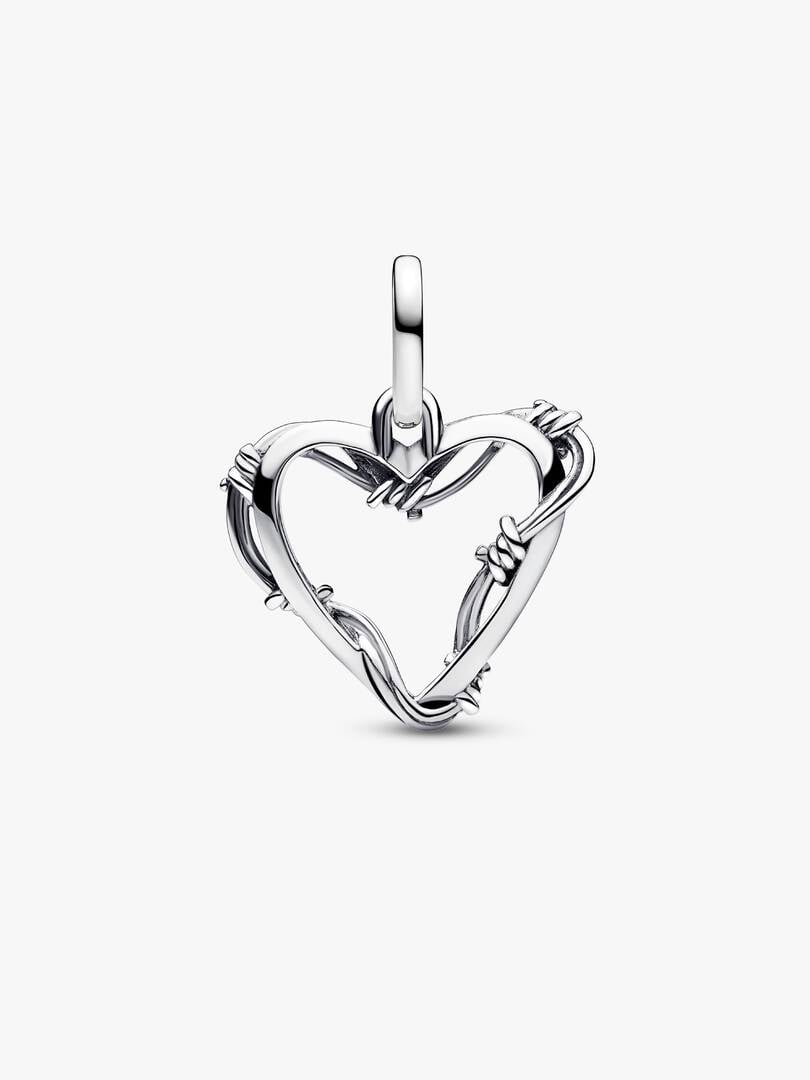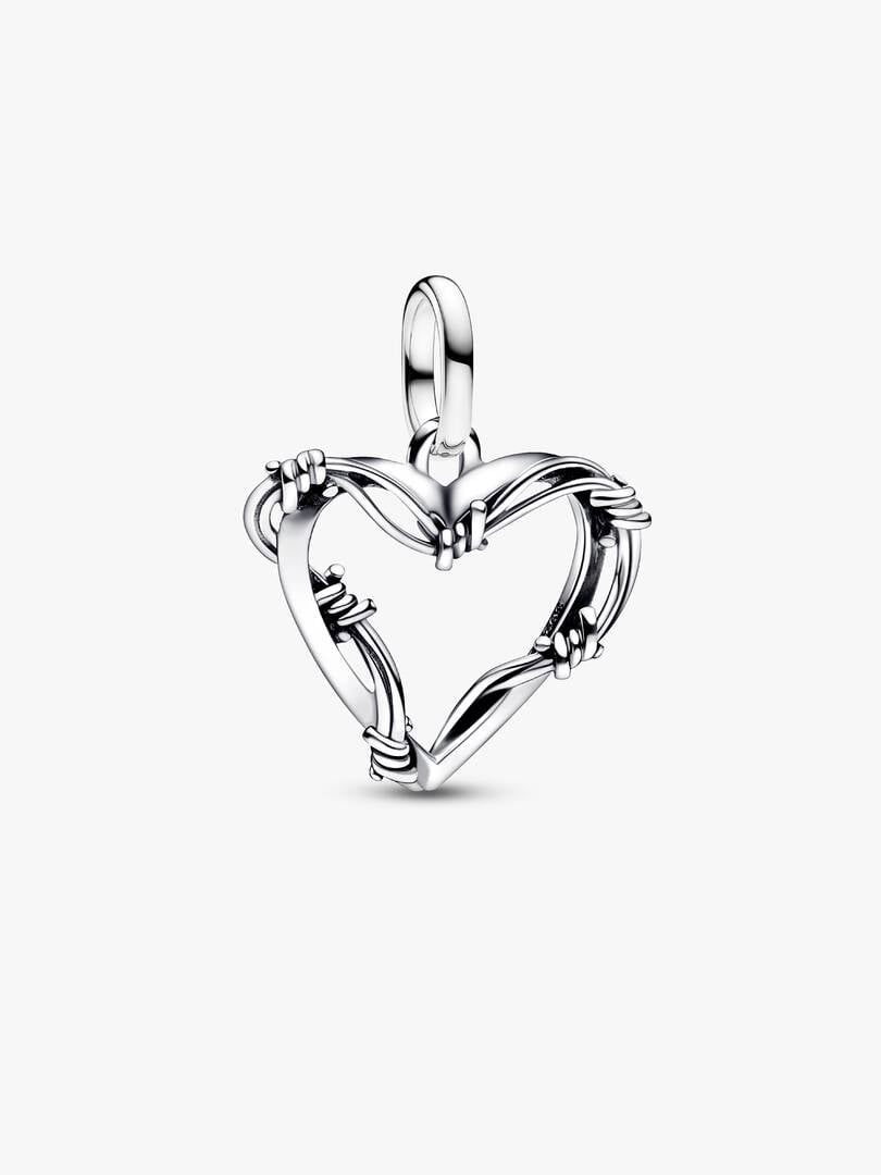 Give yourself a little tough love with the Wire Heart Medallion Charm. Barbed wire swirls around the outline of an open heart, hand-finished in sterling silver. Whether you’re guarding your heart, protecting your love or