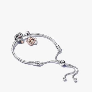 Mom Opalescent Heart Dangle Charm Bracelet Set | Sterling silver